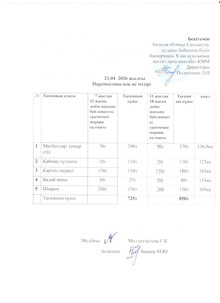 21.04.2026 жылғы перспективалық ас мәзірі.