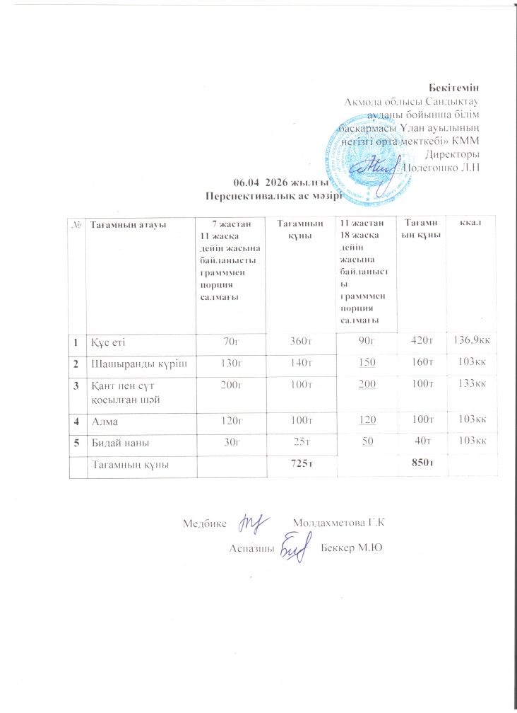 06.04.2026 жылғы перспективалық ас мәзірі.