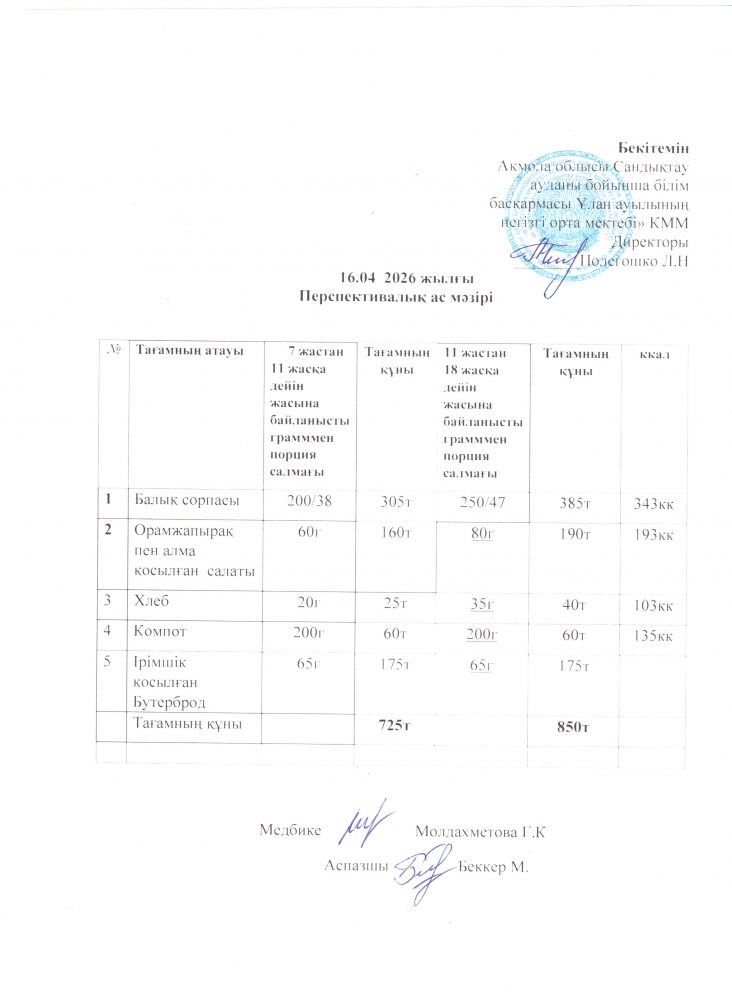 16.04.2026 жылғы перспективалық ас мәзірі.
