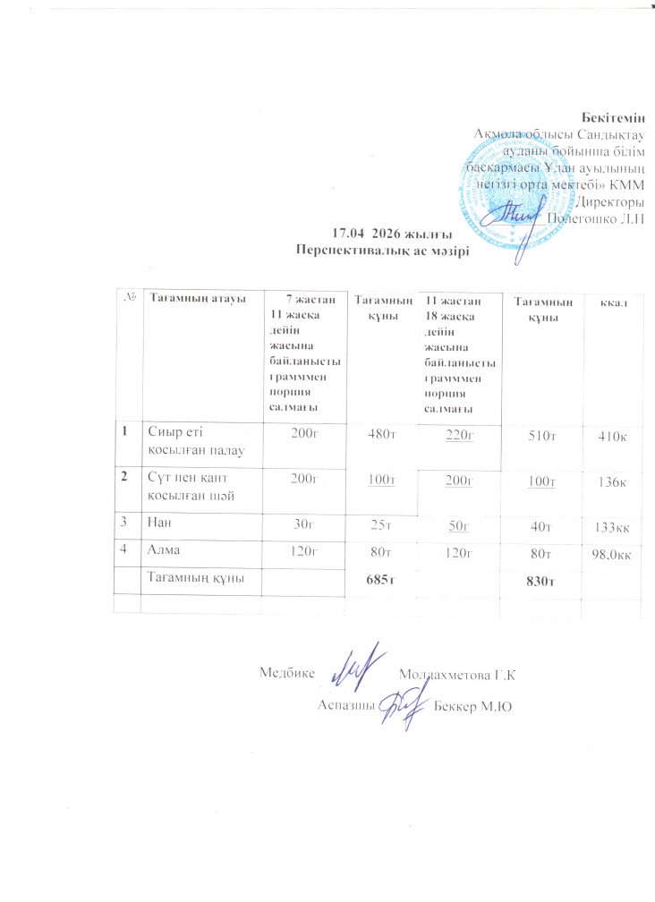 17.04.2026 жылғы перспективалық ас мәзірі.