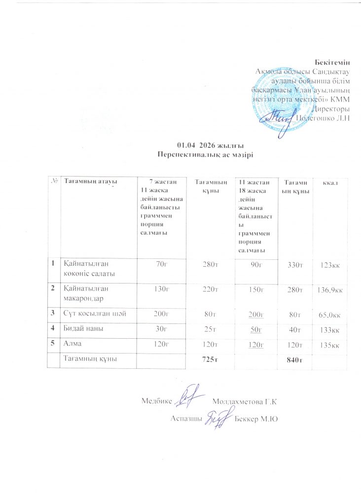 01.04.2026 жылғы перспективалық ас мәзірі.