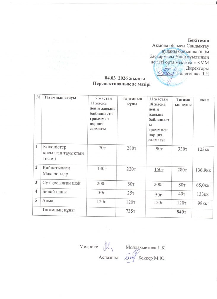 04.03.2026 жылғы перспективалық ас мәзірі.