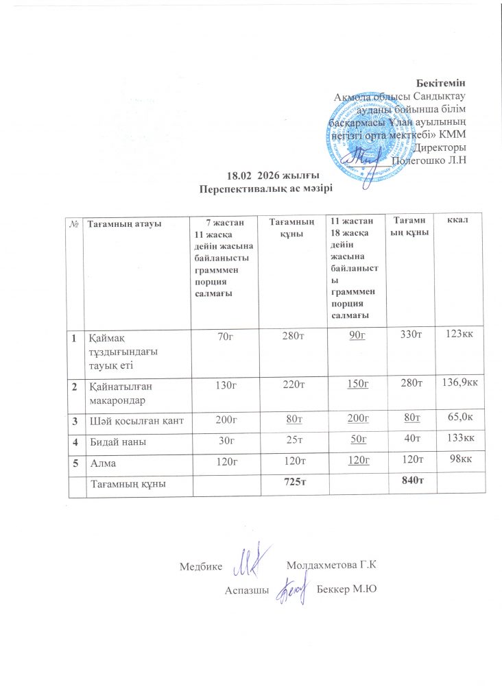 18.02.2026 жылғы перспективалық ас мәзірі.