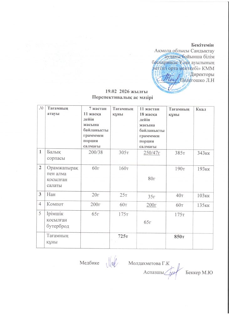 19.02.2026 жылғы перспективалық ас мәзірі.