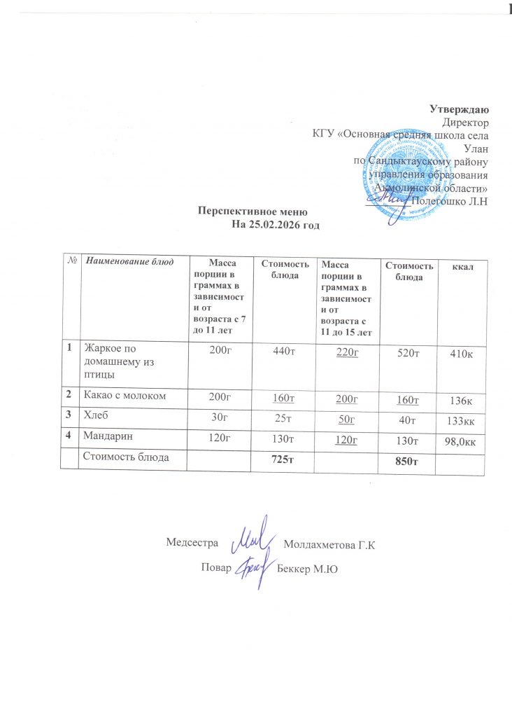 25.02.2026 жылғы перспективалық ас мәзірі.