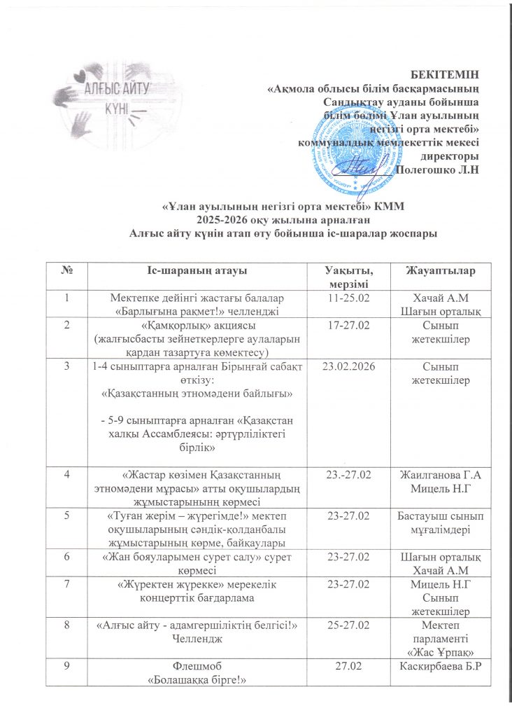 Алыс айту күнін атап өту бойынша жоспар